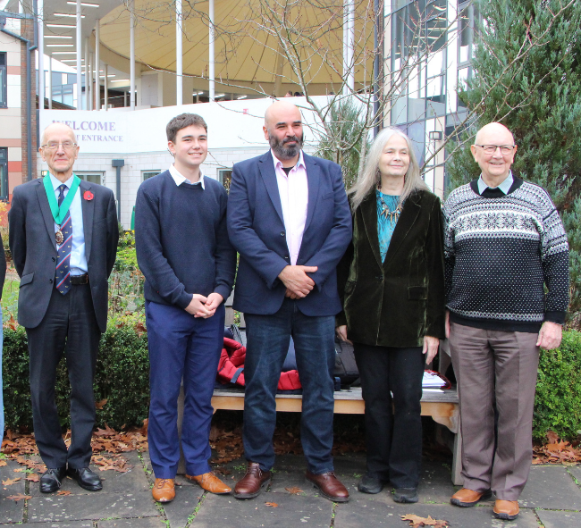 James Wilder (Head of Sixth Form), Katya Burgess (Head Girl), Tony Vickers (West Berks Council Chair), Charlie Gale (Head Boy), Imad Karam, Jo Berry and Howard Grace